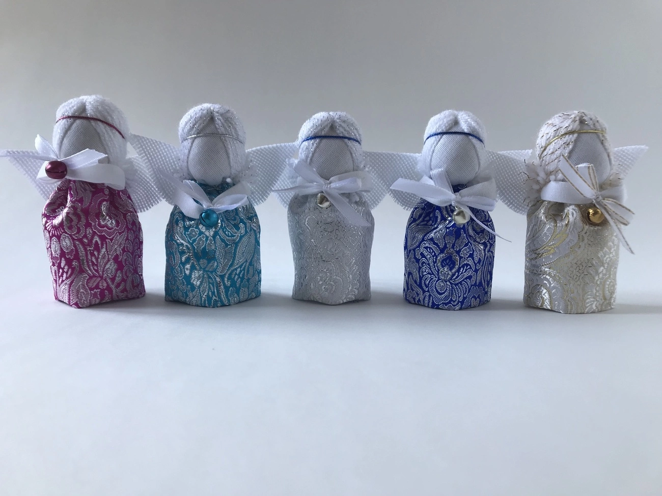 Все обереги выполнены по правилам изготовления куклы-мотанки, с